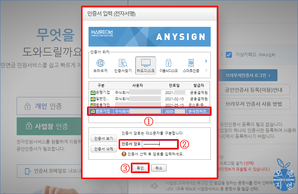 ⇨ 친절한 지식충전소는 공인인증서로 로그인을 하도록 하겠습니다.