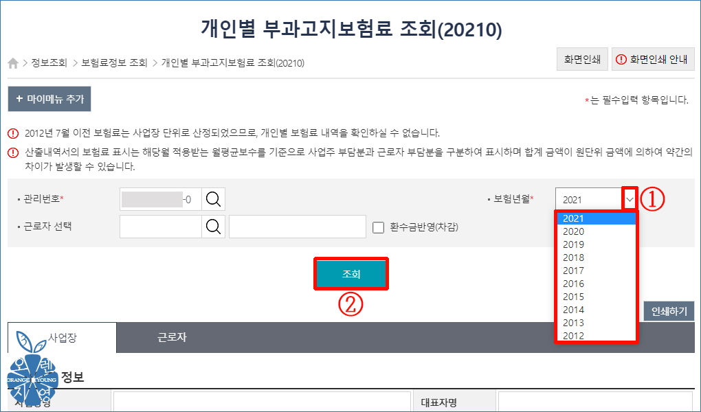 ① [사업장 부과정보]입니다.