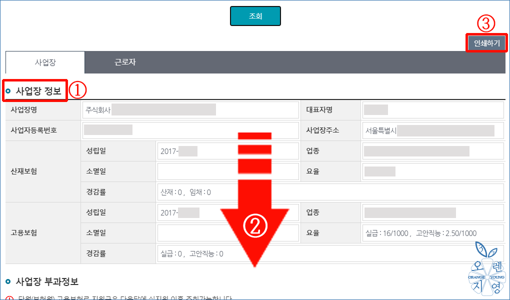 ① [사업장 정보조회] 팝업창이 나옵니다.