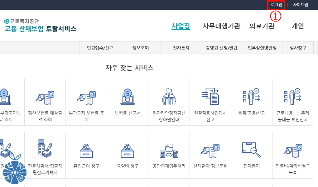 ➲ 근로복지공단 고용산재보험 토탈서비스 홈페이지입니다.