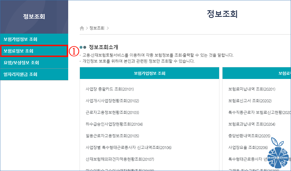 ① '보험료정보 조회'를 선택합니다.