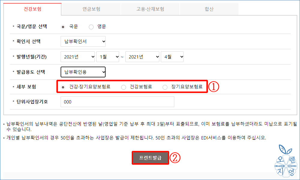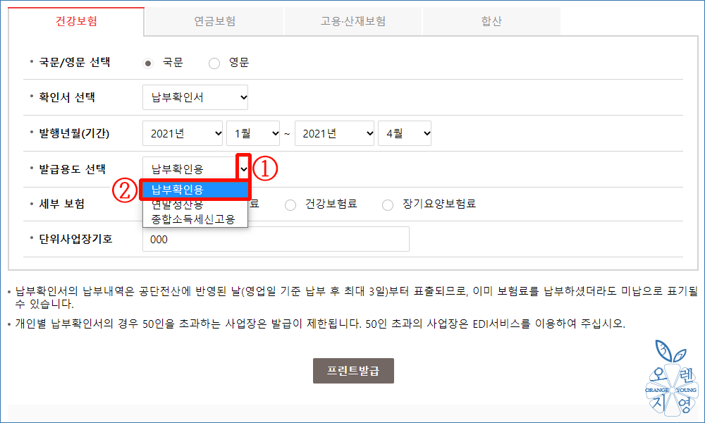 ⇨ 오렌지영37은 법인 건강보험 납입증명서 인터넷 발급으로 진행하고자 합니다.