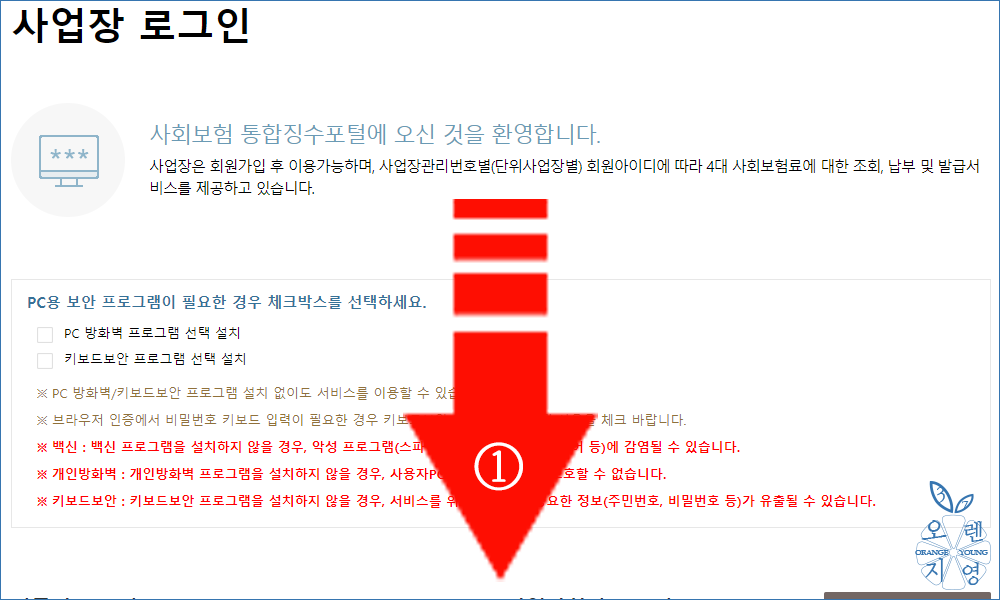 위와 같이 4대보험 납부내역서 발급을 위해서는 반드시 로그인을 하여야 합니다.