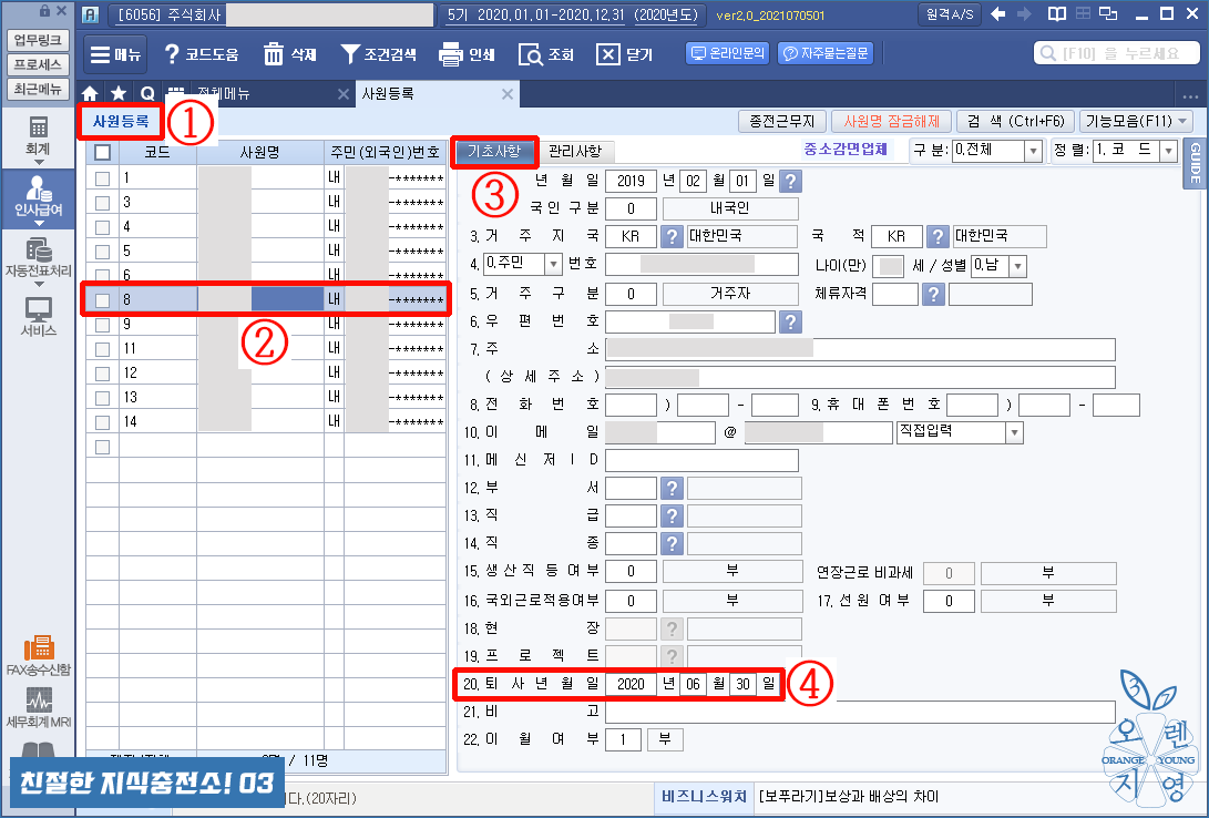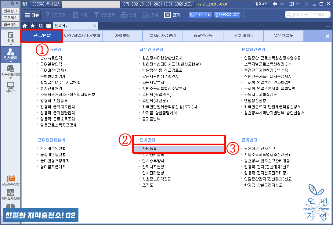 ① [사원등록] 메뉴입니다.