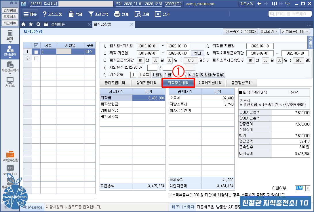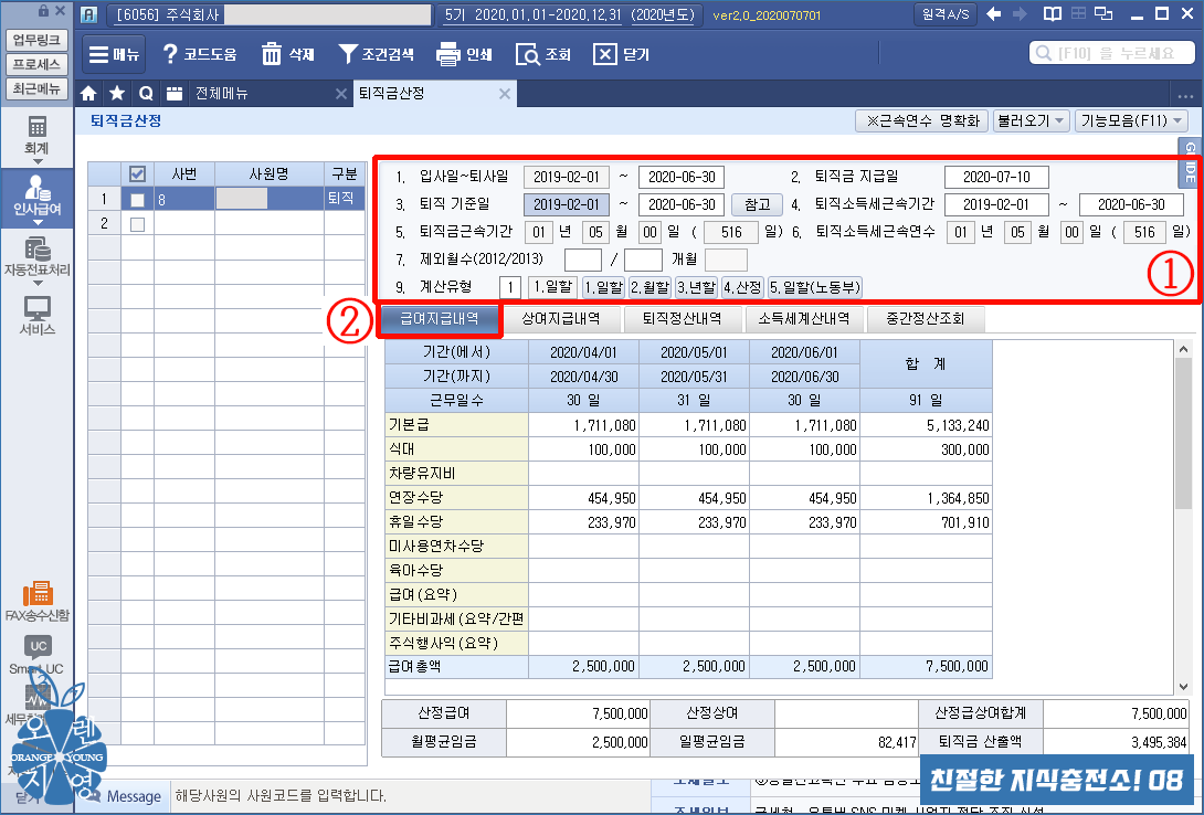 ① [퇴직금산정] 메뉴입니다.