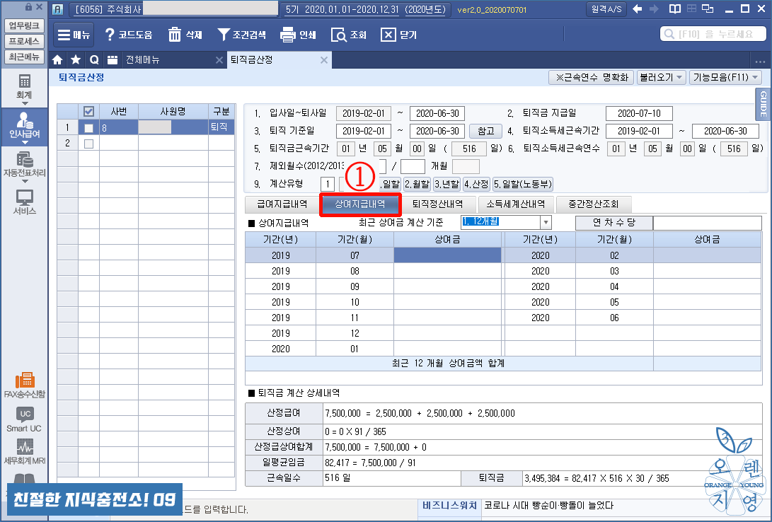 ① 상여지급내역 : 퇴사자의 상여금이 있을 시 자동 계산됩니다.